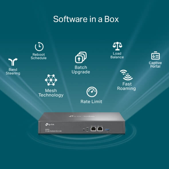 - Gerenciamento Centralizado para até 500 Omada Access Points, JetStream switches e Roteadores SafeStream.
